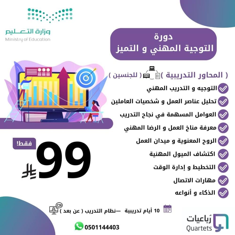 للاستفسار عن توقيت الدورة الرجاء مراسلتنا عبر الواتس اب